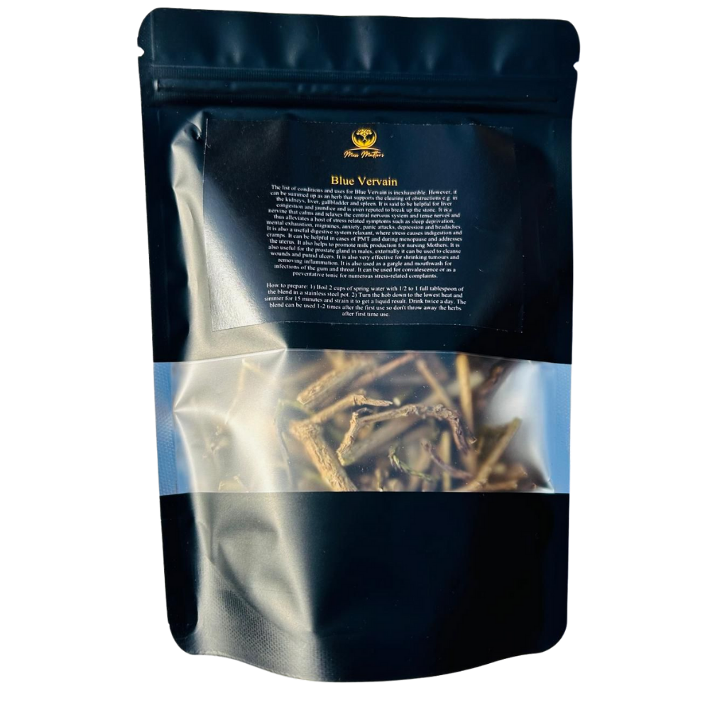 The list of conditions and uses for Blue Vervain is inexhaustible. However, it can be summed up as an herb that supports the clearing of obstructions e.g. in the kidneys, liver, gallbladder, and spleen. It is said to be helpful for liver congestion and jaundice and is even reputed to break up stones. It is a nervine that calms and relaxes the central nervous system and tense nerves and thus alleviates a host of stress-related symptoms such as sleep deprivation, mental exhaustion, migraines, anxiety, panic attacks, depression, and headaches. It is also a useful digestive system relaxant, where stress causes indigestion and cramps. It can be helpful in cases of PMT and during menopause and addresses the uterus. It also helps to promote milk production for nursing mothers. It is also useful for the prostate gland in males, and externally it can be used to cleanse wounds and putrid ulcers. It is also very effective for shrinking tumors and removing inflammation. It is also used as a gargle and mouthwash for infections of the gum and throat. It can be used for convalescence or as a preventative tonic for numerous stress-related complaints.